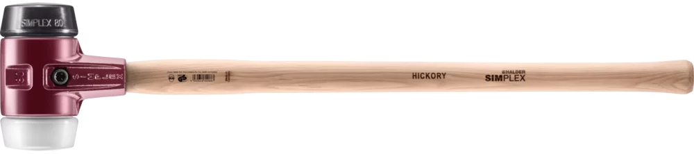 Кувалда SIMPLEX фирмы HALDER с круглыми бойками из композитной резины и суперпластика диаметром 80 мм (арт. 3027.081) применяется для установки бордюрного и облицовочного камня, строительства заборов, лесов, монтажа мебели для дома, строительства сборных домов, плотницких работ, монтажа обрешетки крыши. Разборный корпус изготовлен из чугуна и оснащён встроенной защитной втулкой для ручки, а деревянная рукоятка гикори, покрытая двойным слоем лака в области захвата устойчива к загрязнениям. Все части киянки сменные и могут быть заменены при износе или по необходимости. Бойки можно подобрать в зависимости от специфики насущных работ, которые вы планируете выполнять. Данная кувалда оснащена бойком из чёрной износостойкой резины без запаха, средней жёсткости, хорошо амортизирующей удар и очень прочным бойком из суперпластика. Разнообразный модельный ряд молотков SIMPLEX позволяет вам подобрать молоток по диаметру бойка, типу бойка и виду головки. Доступны к покупке бойки Simplex: резина (арт. 3202.080), суперпластик (арт. 3207.080), нейлон (арт. 3208.080), мягкий металл (арт. 3209.080).
