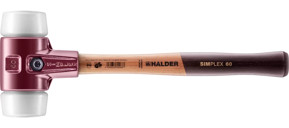 Молоток SIMPLEX фирмы HALDER с круглыми бойками из суперпластика диаметром 60 мм (арт. 3007.060) применяется для установки бордюрного и облицовочного камня, строительства заборов, лесов, монтажа мебели для дома, строительства сборных домов, плотницких работ, монтажа обрешетки крыши. Разборный корпус бойка изготовлен из чугуна и оснащён встроенной защитной втулкой для ручки, а деревянная рукоятка гикори, покрытая двойным слоем лака в области захвата устойчива к загрязнениям. Все части киянки сменные и могут быть заменены при износе или по необходимости. Бойки можно подобрать в зависимости от специфики насущных работ, которые вы планируете выполнять. Данный молоток оснащён бойками из суперпластика. Разнообразный модельный ряд молотков SIMPLEX позволяет вам подобрать молоток по диаметру бойка, типу бойка и виду головки. Доступны к покупке бойки Simplex: резина (арт. 3202.060), суперпластик (арт. 3207.060), мягкий эластомер ( арт. 3201.060), эластомер средней жёсткости (арт. 3203.060), красный пластик (арт. 3206.060), нейлон (арт. 3208.060), мягкий металл (арт. 3209.060).
