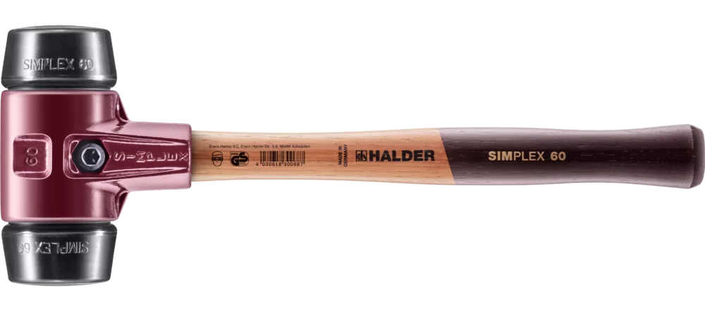 Молоток SIMPLEX фирмы HALDER с круглыми резиновыми бойками диаметром 60 мм (арт. 3002.060) применяется для установки бордюрного и облицовочного камня, строительстве заборов, лесов, строительстве сборных домов, плотницких работ, монтажа обрешетки крыши. Разборный корпус бойка изготовлен из чугуна и оснащён встроенной защитной втулкой для ручки, а деревянная рукоятка гикори, покрытая двойным слоем лака в области захвата устойчива к загрязнениям. Все части киянки сменные и могут быть заменены при износе или по необходимости. Бойки можно подобрать в зависимости от специфики насущных работ, которые вы планируете выполнять. Данный молоток оснащён бойком из чёрной износостойкой резины без запаха, средней жёсткости, хорошо амортизирующей удар. Разнообразный модельный ряд молотков SIMPLEX позволяет вам подобрать молоток по диаметру бойка, типу бойка и виду головки. Доступны к покупке бойки Simplex: резина (арт. 3202.060), суперпластик (арт. 3207.060), мягкий эластомер ( арт. 3201.060), эластомер средней жёсткости (арт. 3203.060), красный пластик (арт. 3206.060), нейлон (арт. 3208.060), мягкий металл (арт. 3209.060).