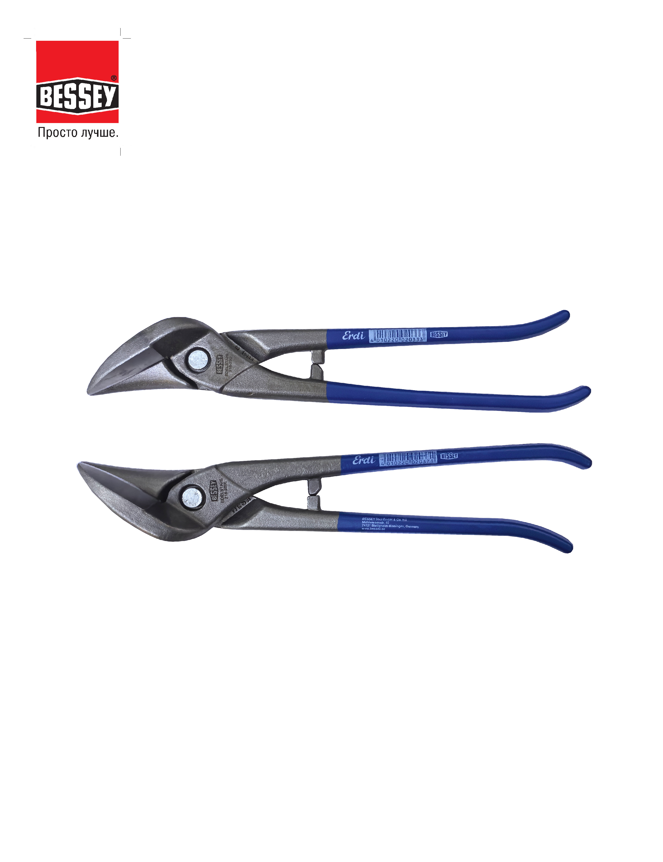 В комплект ножниц входят комбинированные (идеальные) ножницы ERDI BESSEY с окрашенными рукоятками D216-280 (правые, арт. ОЗОН: 597910035) и D216-280L (левые, арт. ОЗОН: 599266915). Профессиональные комбинированные ручные идеальные ножницы BESSEY служат для резки тонколистного металла (сталь, медь, алюминий) для прямолинейных резов и резов по окружности. Ножницы изготавливаются из легированной инструментальной стали с последующей объёмной и поверхностной термообработкой лезвий. Для удобства ножницы могут оснащаться оригинальными пружинами STUBAI (арт. 270250, арт. ОЗОН: 597906918).